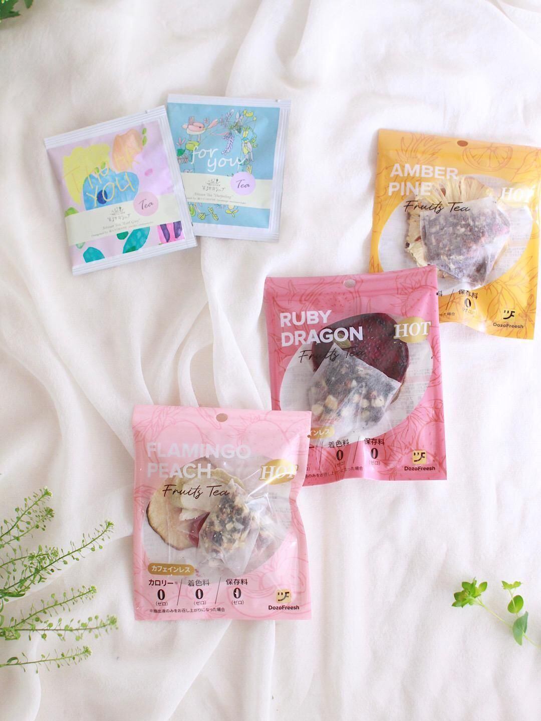 第3世界ショップのArisanTeaとDOZO freshのフルーツティを一点ずつ。