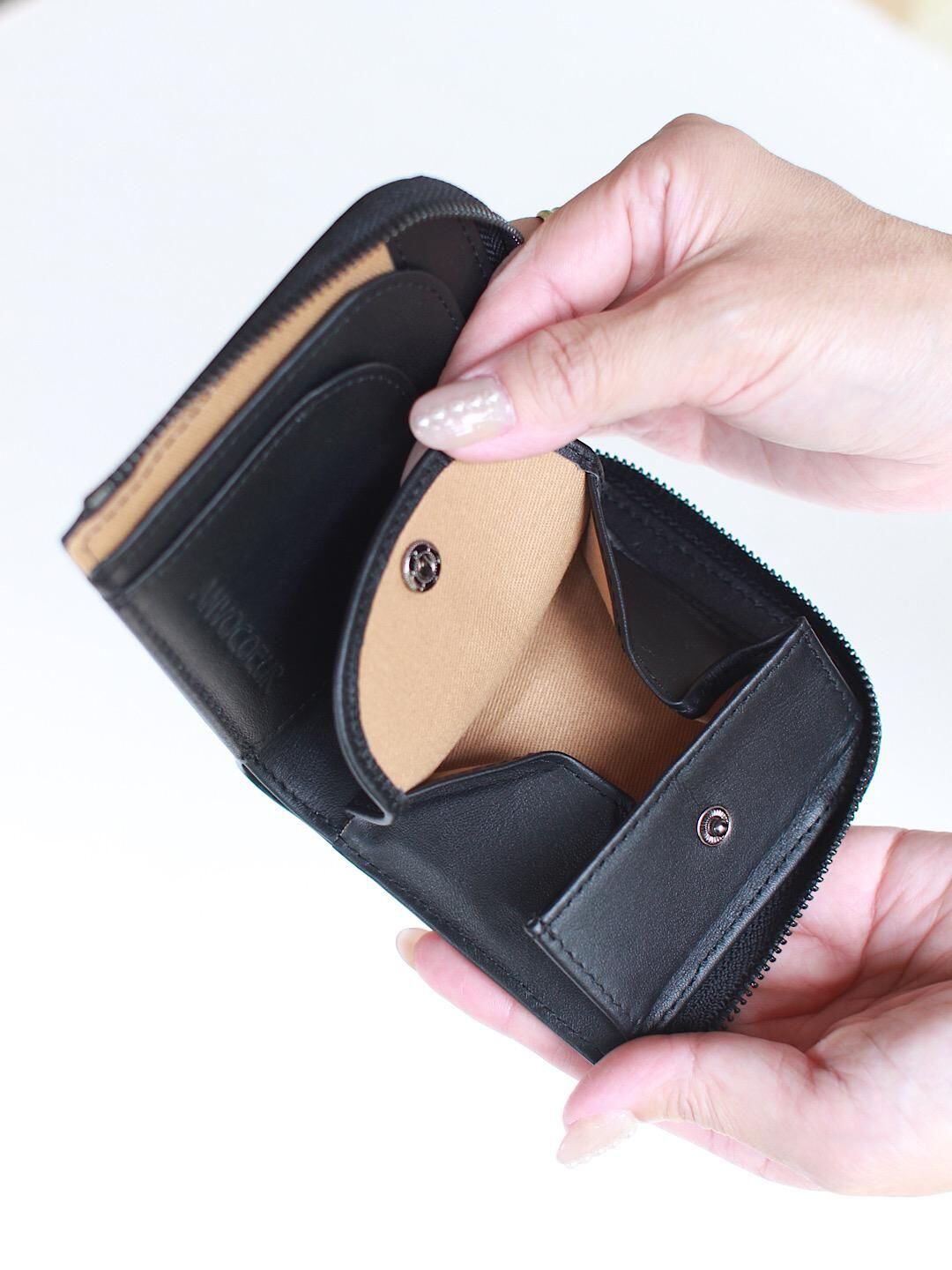 スムースレザー(牛革)を使用したコンパクトなお財布。