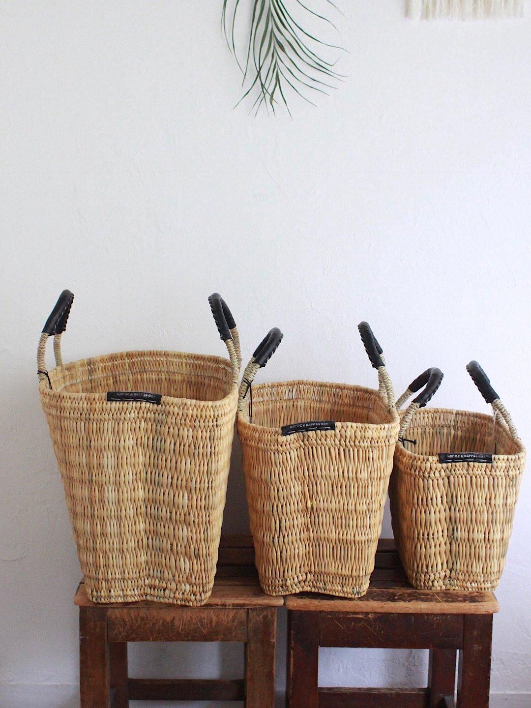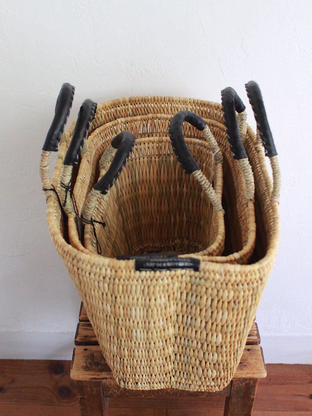 大きめのストロー素材の台形のかごが届きました。