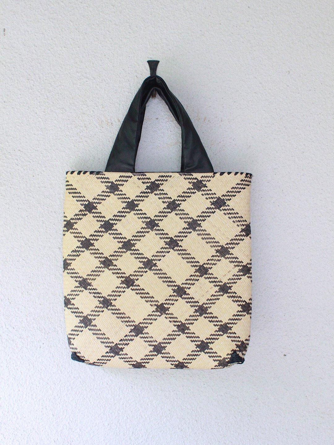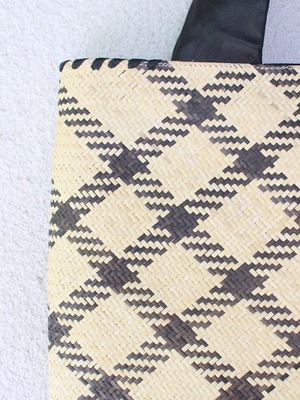 warangwayan(ワランワヤン) ラタン FUTO 革手 バスケット A4 ブラック チェック